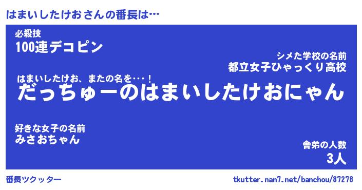 | ヒーロー風カッコイイあだ名 | 『スーパーハマイシタケオ』 |