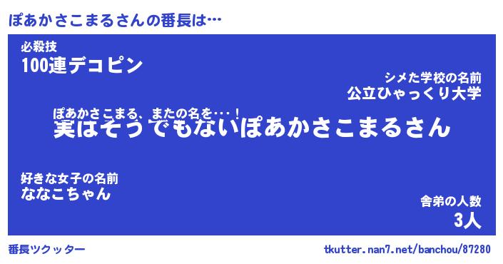 | 伝説のあだ名 | 『封印されしスナイパーぽあかさこまる』 |