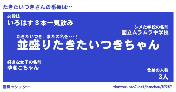 | ヘコむあだ名 | 『たきにー』『豆乳』『たきを』 |
