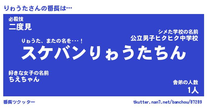 | 意味不明あだ名 | 『ペロリンりゎうた』『永久保存りゎうた』 |