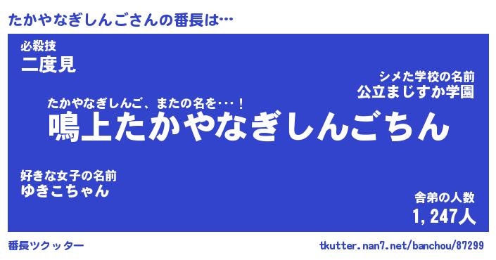 | 意味不明あだ名 | 『ペロリンたかやなぎしんご』 |
