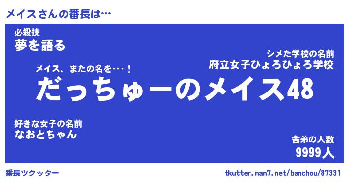 | 意味不明あだ名 | 『ペロリンメイス』『メイスフォーエバー』 |