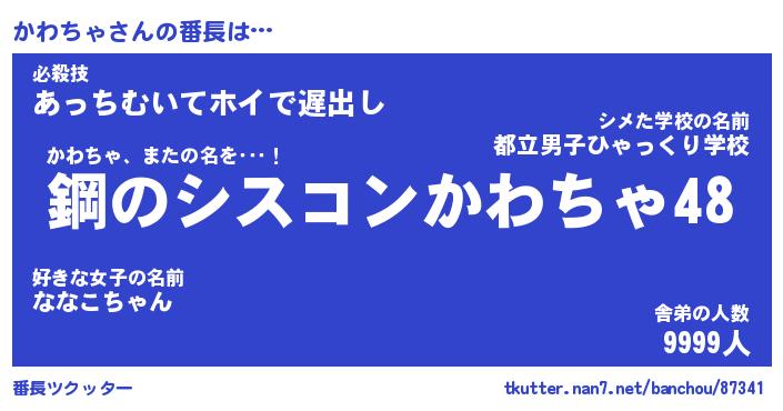 | 意味不明あだ名 | 『ペロリンかわちゃ』『永久保存かわちゃ』 |