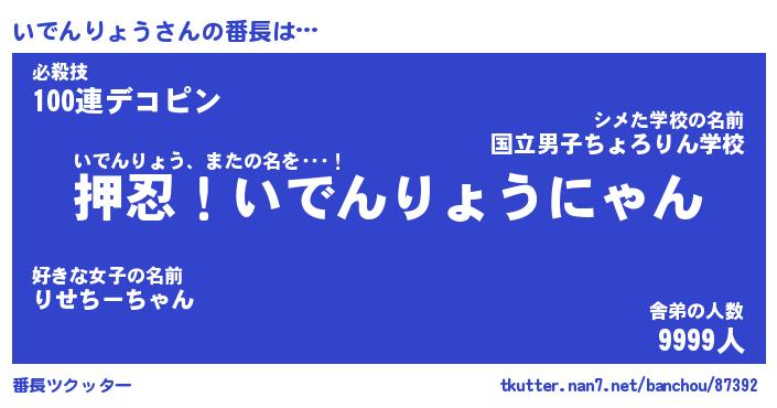 | 肩書あだ名 | 『いでんりょう店長』『いでんりょう担任』 |