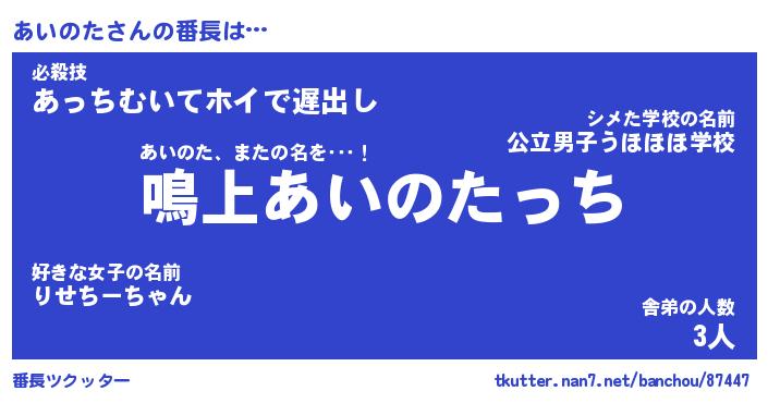 | 欧米人風あだ名 | 『マイケルあいのた』『ウサインあいのた』 |
