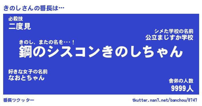 | 意味不明あだ名 | 『ペロリンきのし』『きのしフォーエバー』 |