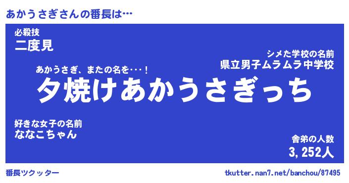 | ヒーロー風カッコイイあだ名 | 『スーパーアカウサギ』『天弓騎士アカ』 |