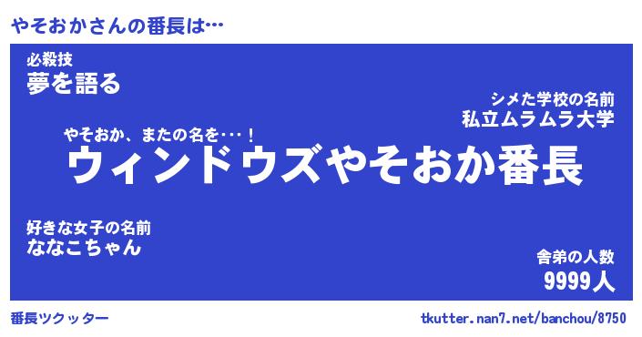 | 肩書あだ名 | 『やそおか御曹司』『やそおか国家主席』 |