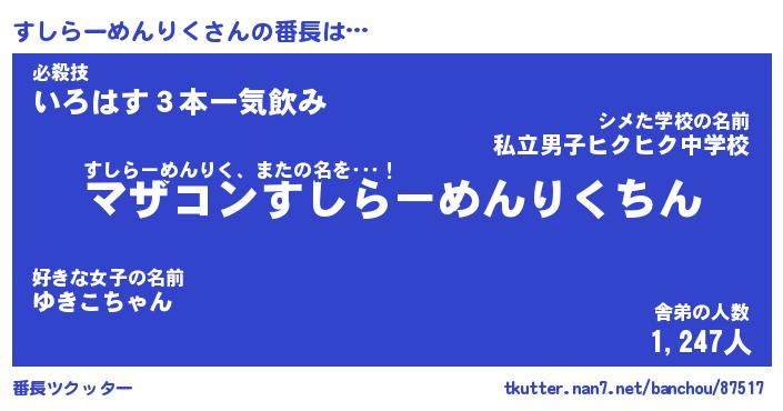 | ヘコむあだ名 | 『すしもー』『なまこ酢』『すしを』 |