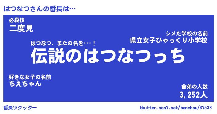 | ヒーロー風カッコイイあだ名 | 『スーパーハツナツ』『魔戒騎士ハツ』 |