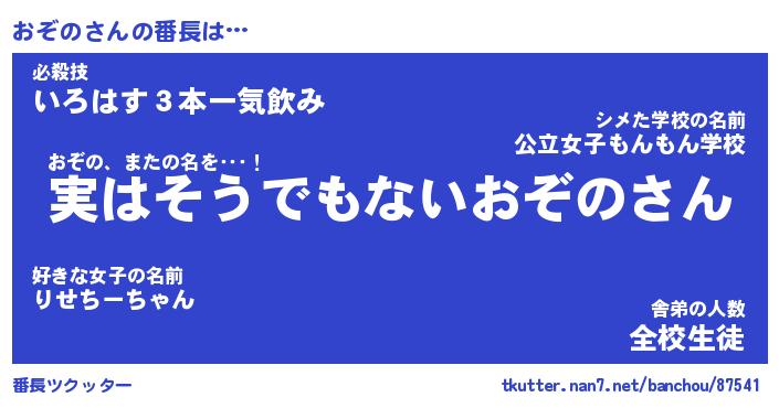 | 意味不明あだ名 | 『ペロリンおぞの』『おぞのフォーエバー』 |