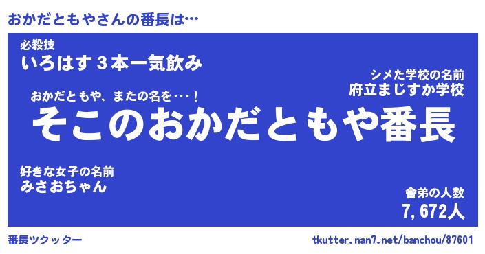 | 伝説のあだ名 | 『不死鳥のスナイパーおかだともや』 |