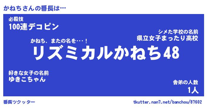 | 意味不明あだ名 | 『ペロリンかねち』『かねちフォーエバー』 |