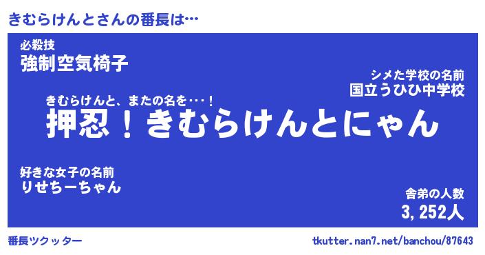 | 伝説のあだ名 | 『封印されしスナイパーきむらけんと』 |