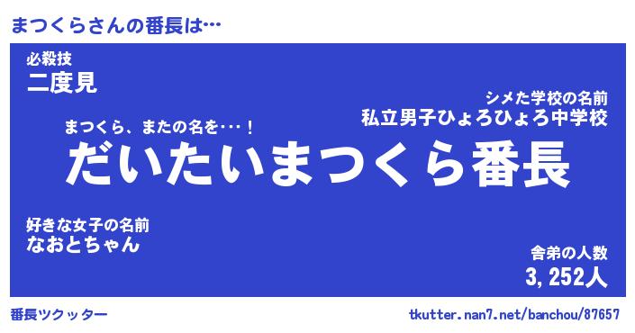 | ピコ太郎風あだ名 | 『マコ十郎』『ピマ史郎』『マツ四郎』 |