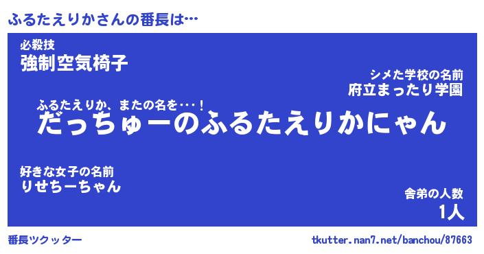 | ヒーロー風カッコイイあだ名 | 『スーパーフルタエリカ』『暗黒騎士フル』 |