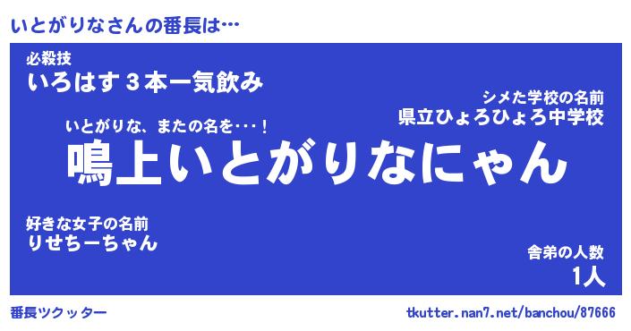 | ピコ太郎風あだ名 | 『イコ五郎』『ピイ六郎』『イト四郎』 |
