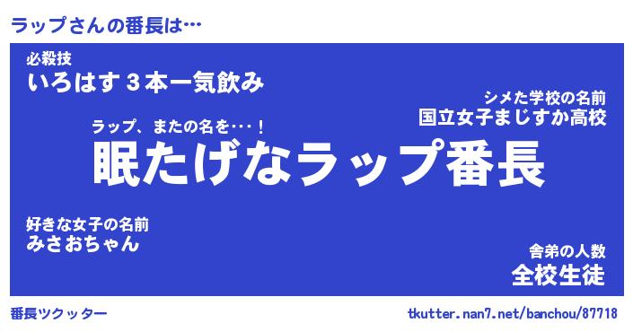 | 肩書あだ名 | 『ラップ社長令嬢』『ラップ大統領』 |