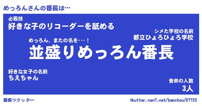 | 意味不明あだ名 | 『ペロリンめっろん』『永久保存めっろん』 |
