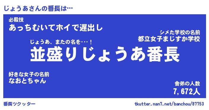 | 意味不明あだ名 | 『ペロリンじょうあ』『永久保存じょうあ』 |