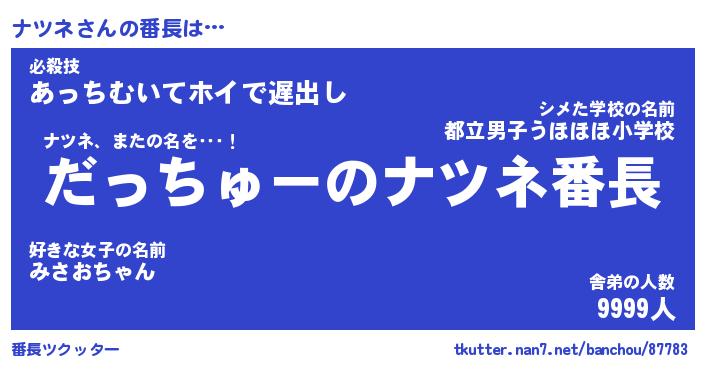 | 伝説のあだ名 | 『伝説のスナイパーナツネ』 |