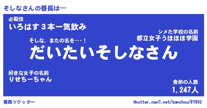 | 意味不明あだ名 | 『ペロリンそしな』『そしなフォーエバー』 |