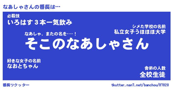 | ヘコむあだ名 | 『なあもー』『なまこ酢』『なあっぺ』 |