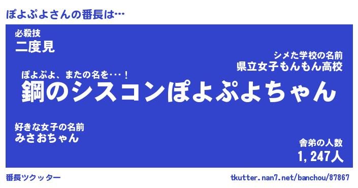 | 意味不明あだ名 | 『ペロリンぽよぷよ』『永久保存ぽよぷよ』 |
