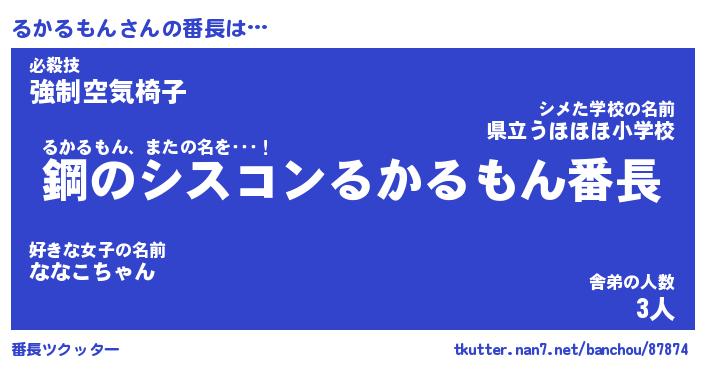 | 肩書あだ名 | 『るかるもん店長』『るかるもん国家主席』 |