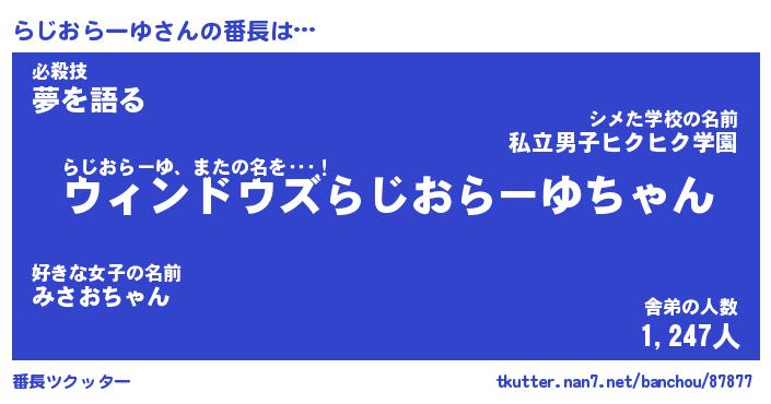 | 肩書あだ名 | 『らじおらーゆ御曹司』 |
