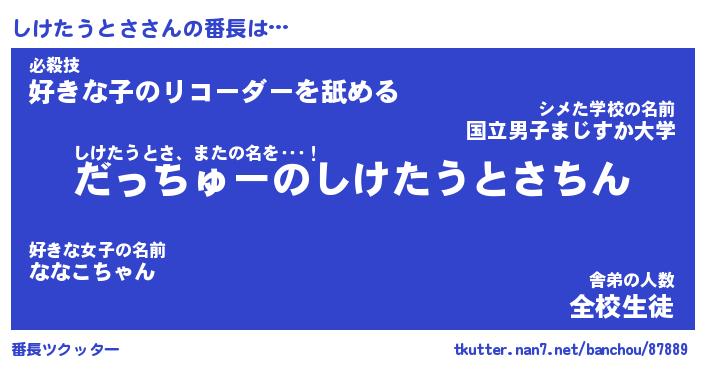 | ヒーロー風カッコイイあだ名 | 『スーパーシケタウトサ』『暗黒騎士シケ』 |