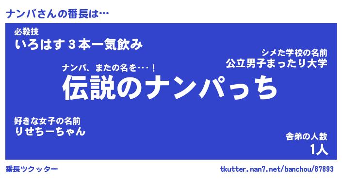 | ヒーロー風カッコイイあだ名 | 『スーパーナンパ』『ウルトラナンパマン』 |