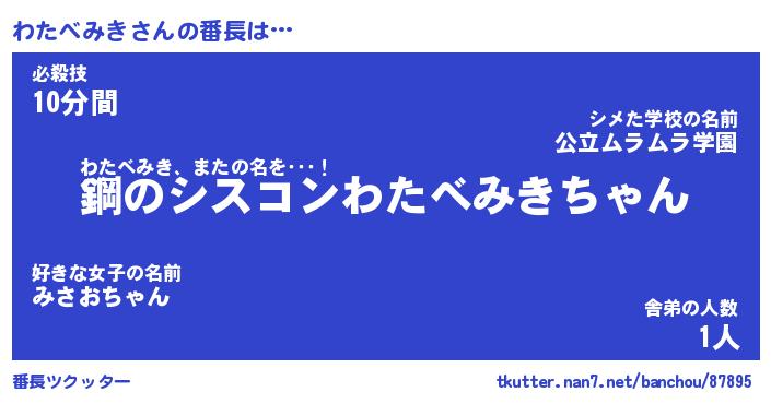 | 伝説のあだ名 | 『封印されしスナイパーわたべみき』 |