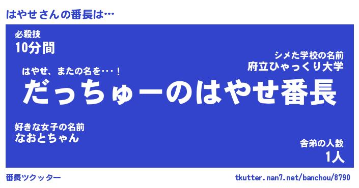 | ヒーロー風カッコイイあだ名 | 『スーパーハヤセ』『ウルトラはやせマン』 |