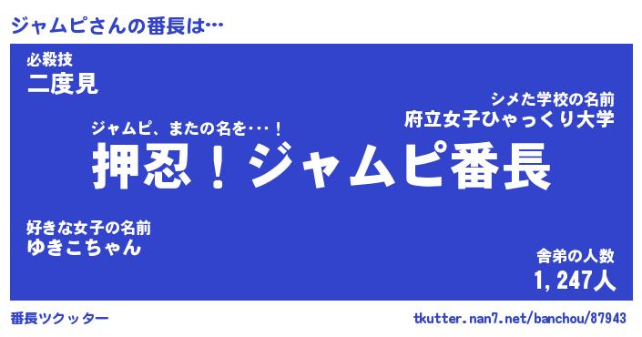 | 肩書あだ名 | 『ジャムピ社長』『ジャムピ総理大臣』 |