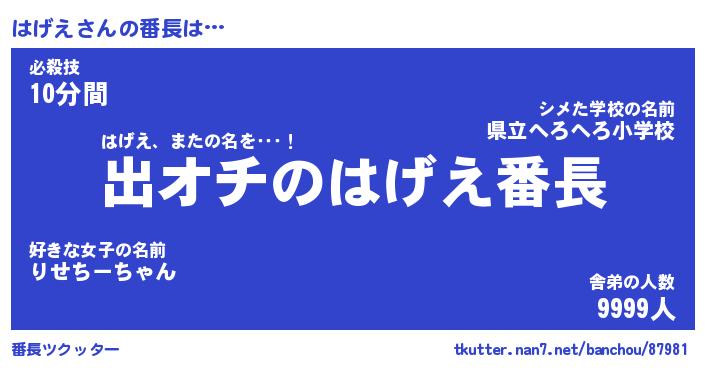| ピコ太郎風あだ名 | 『ハコ一郎』『ピハ五郎』『ハゲ十郎』 |