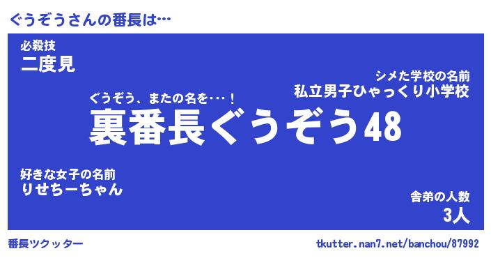 | 意味不明あだ名 | 『ペロリンぐうぞう』『永久保存ぐうぞう』 |