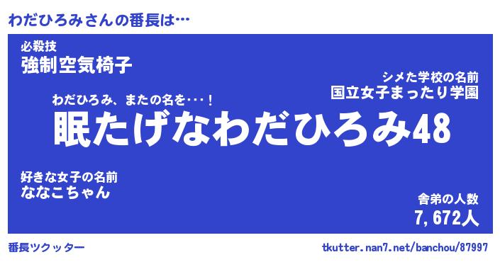 | 肩書あだ名 | 『わだひろみ店長』『わだひろみ国家主席』 |