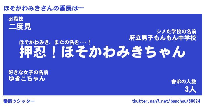 | 恥ずかしいあだ名 | 『プリティーほそかわみき』『ほそっちょ』 |