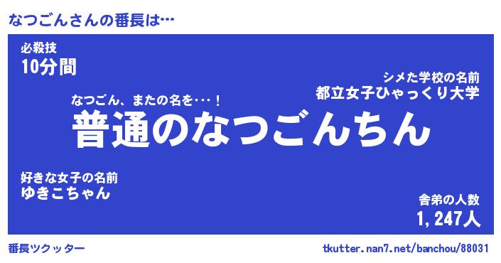 | ポケモン風あだ名 | 『ナツチュウ』『ナツゴダネ』 |