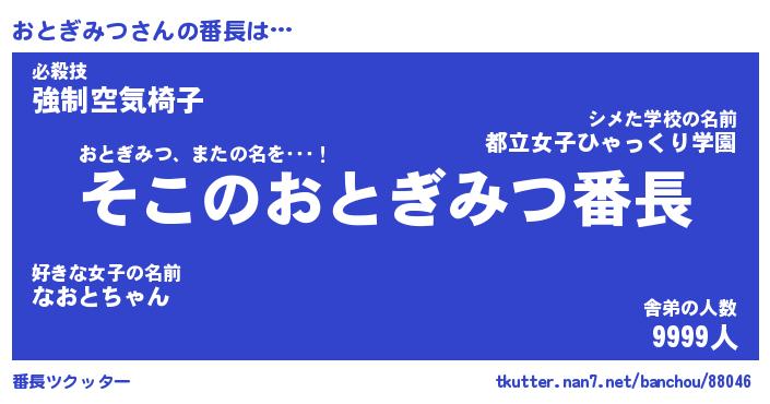 | 肩書あだ名 | 『おとぎみつ社長』『おとぎみつ国家主席』 |