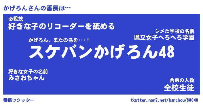 | 肩書あだ名 | 『かげろん店長』『かげろん国家主席』 |