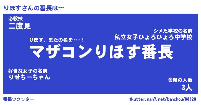 | 意味不明あだ名 | 『ペロリンりほす』『りほすフォーエバー』 |