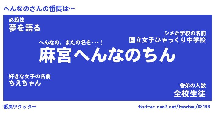 | ヒーロー風カッコイイあだ名 | 『スーパーヘンナノ』『暗黒騎士ヘン』 |