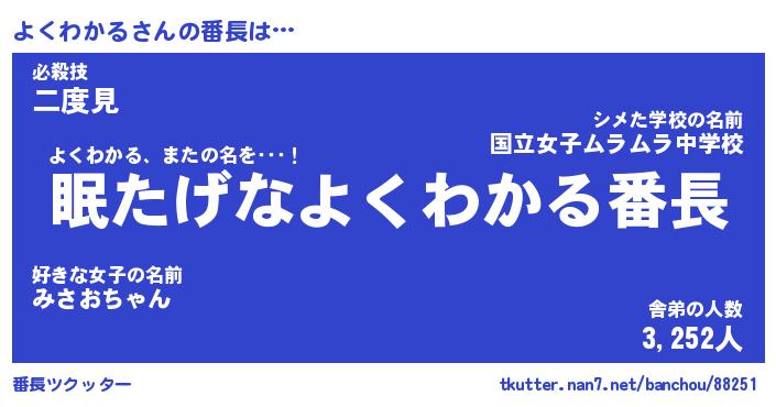 | ファンタジー風あだ名 | 『ヨクフェル』『エターナルヨクワカルー』 |