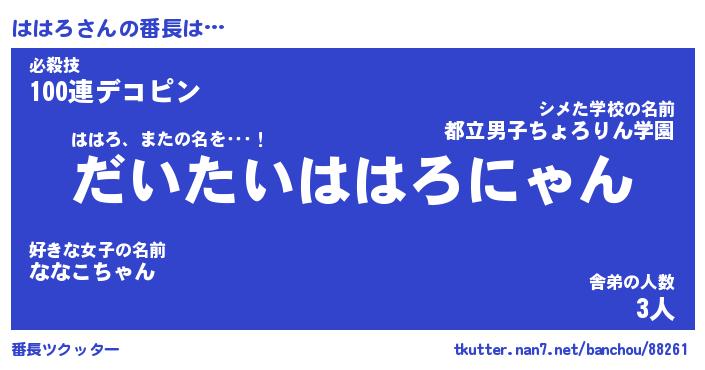 | ヒーロー風カッコイイあだ名 | 『スーパーハハロ』『ウルトラははろマン』 |