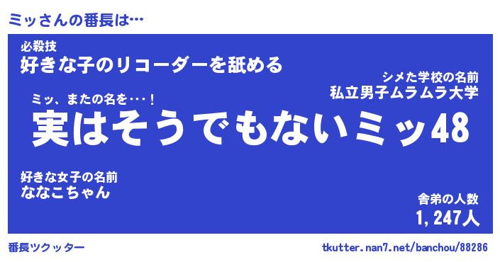 | 2回繰り返すあだ名 | 『ミッミッ』『ミミッッ』『ぬめぬめ』 |