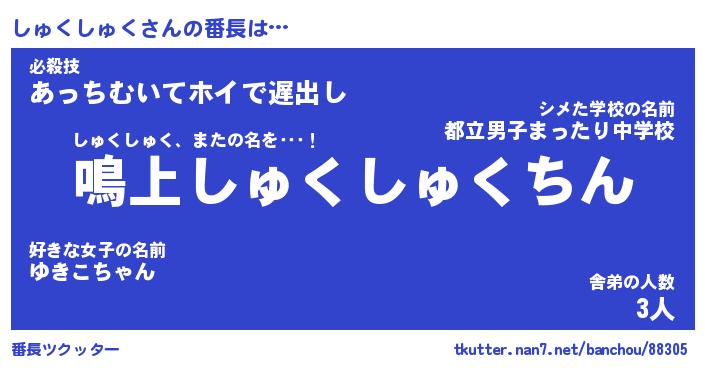 | ヒーロー風カッコイイあだ名 | 『スーパーシュクシュク』『魔戒騎士シュ』 |