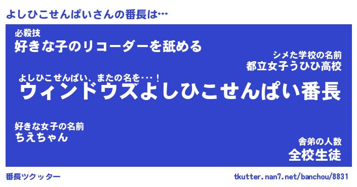 | 伝説のあだ名 | 『伝説の傭兵よしひこせんぱい』 |