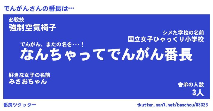 | ヘコむあだ名 | 『でんにー』『牛乳』『でんお』 |